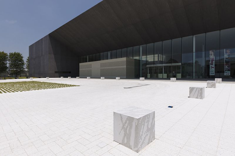 At the Ota Civic Hall you can find very elegant minimalistic Graphic Concrete bollards and stools, outside and inside the building. The pattern is one of our all-time favorites; GCCollection Grass.